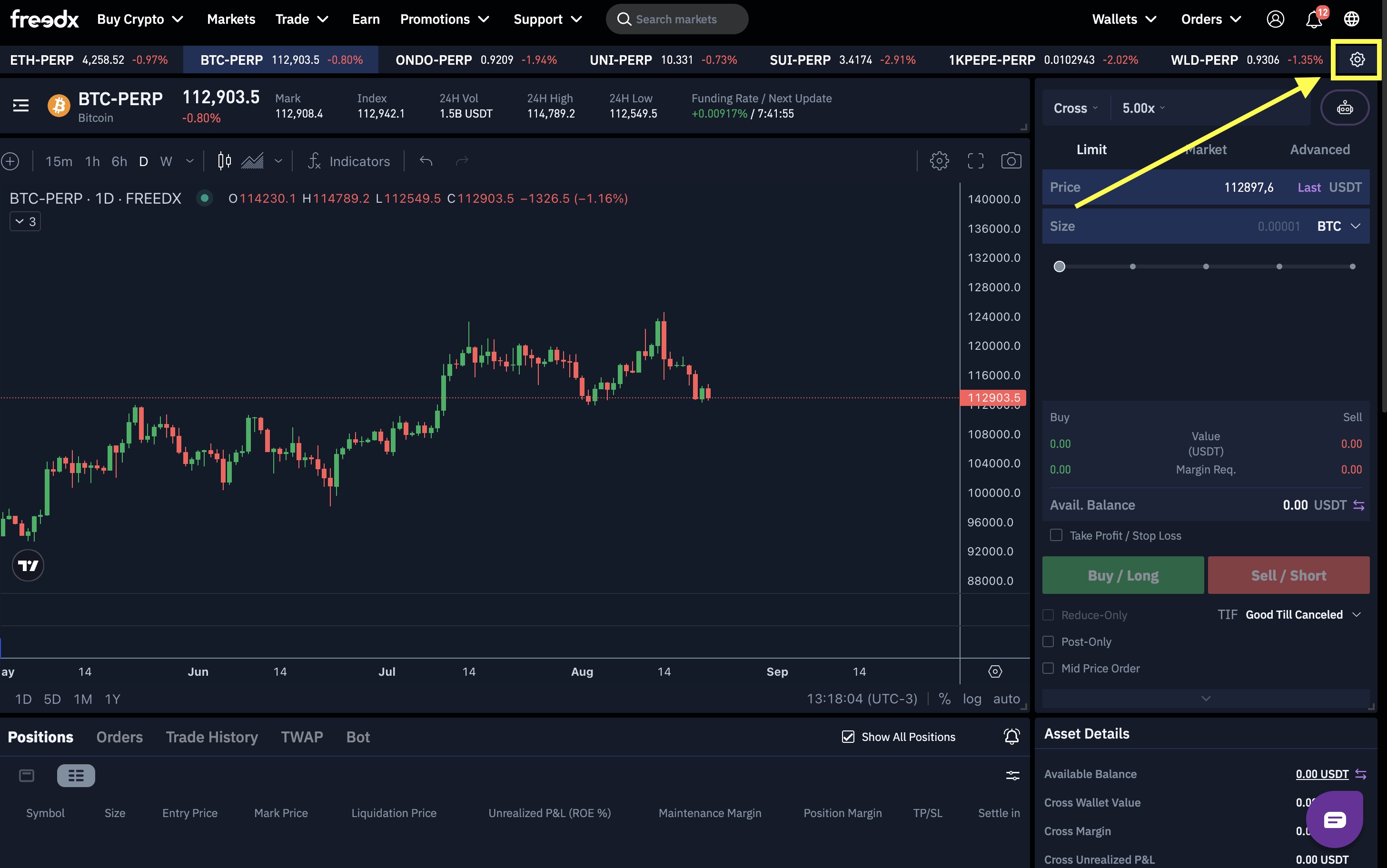 1. Click on the settings icon in the top right corner of the Futures Trading page.